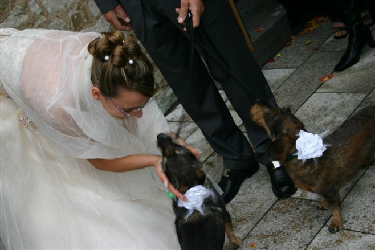 Nicht nur "menschliche" Gäste waren zur Feier recht zahlreich erschienen, sondern auch die "Hochzeitshunde" - natürlich in ansprechender Festkleidung.